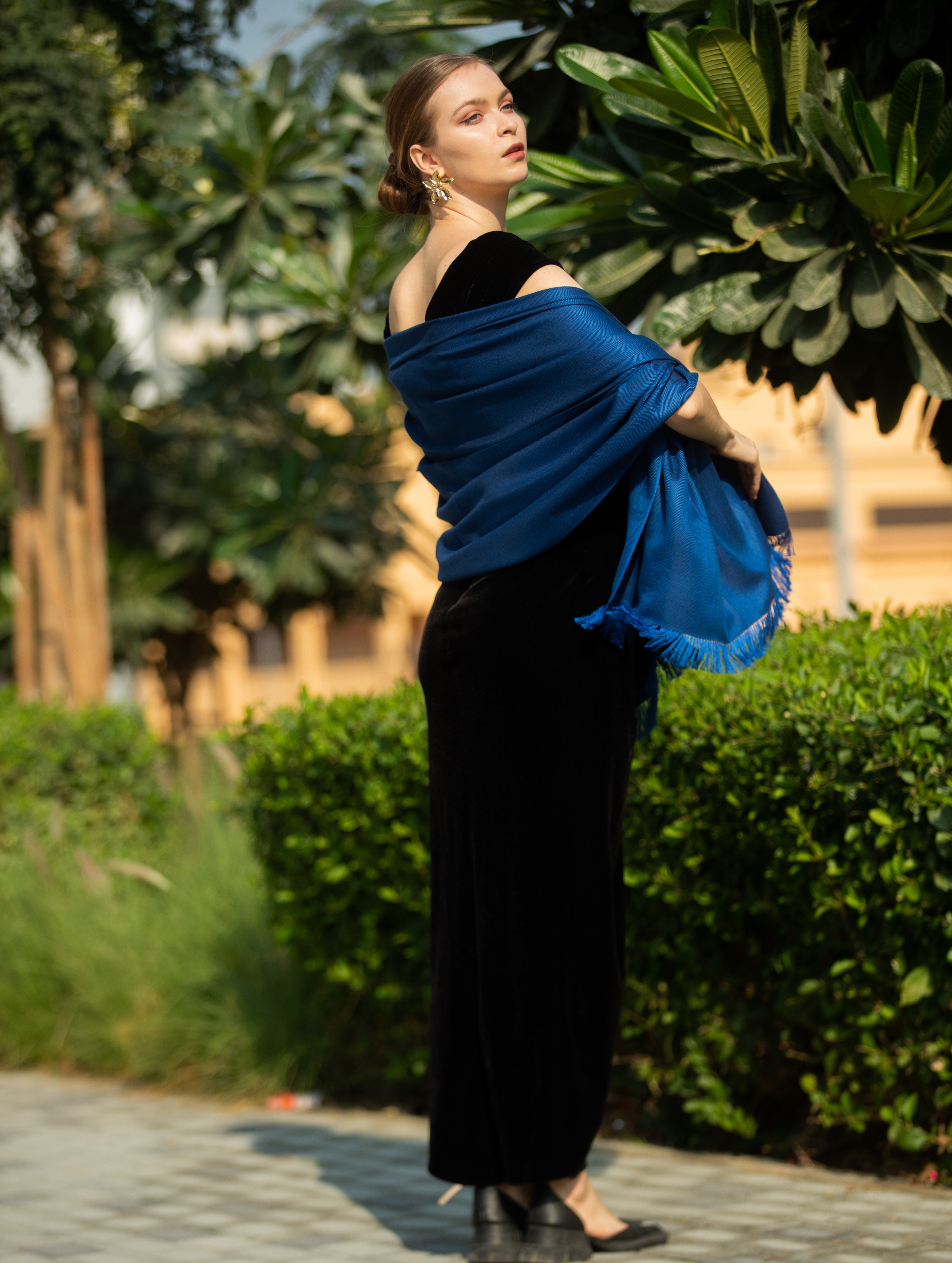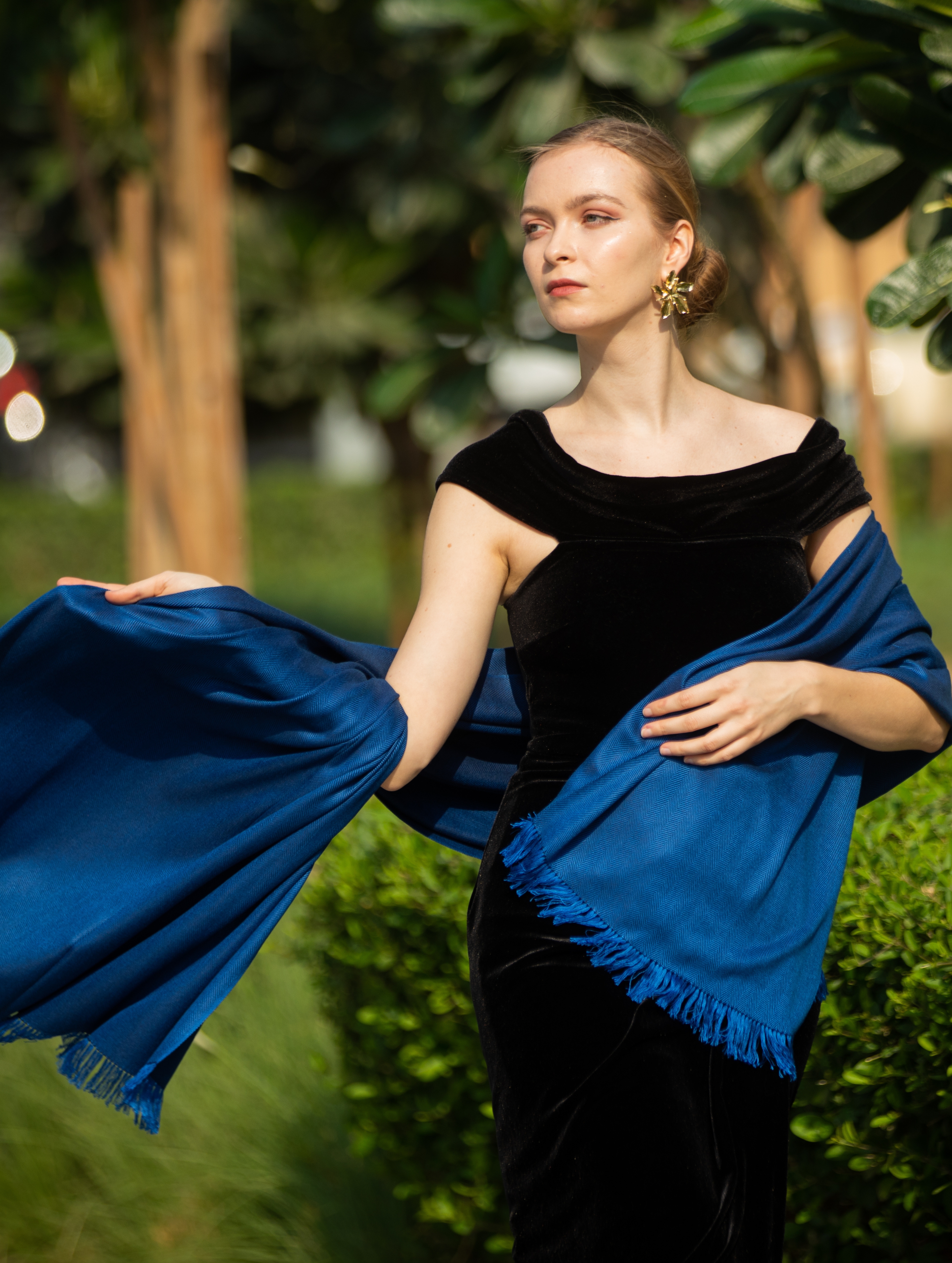 Egyptian Cotton Luxury Scarf/Shawls - Dark Blue - 100% Cotton - Handloomed