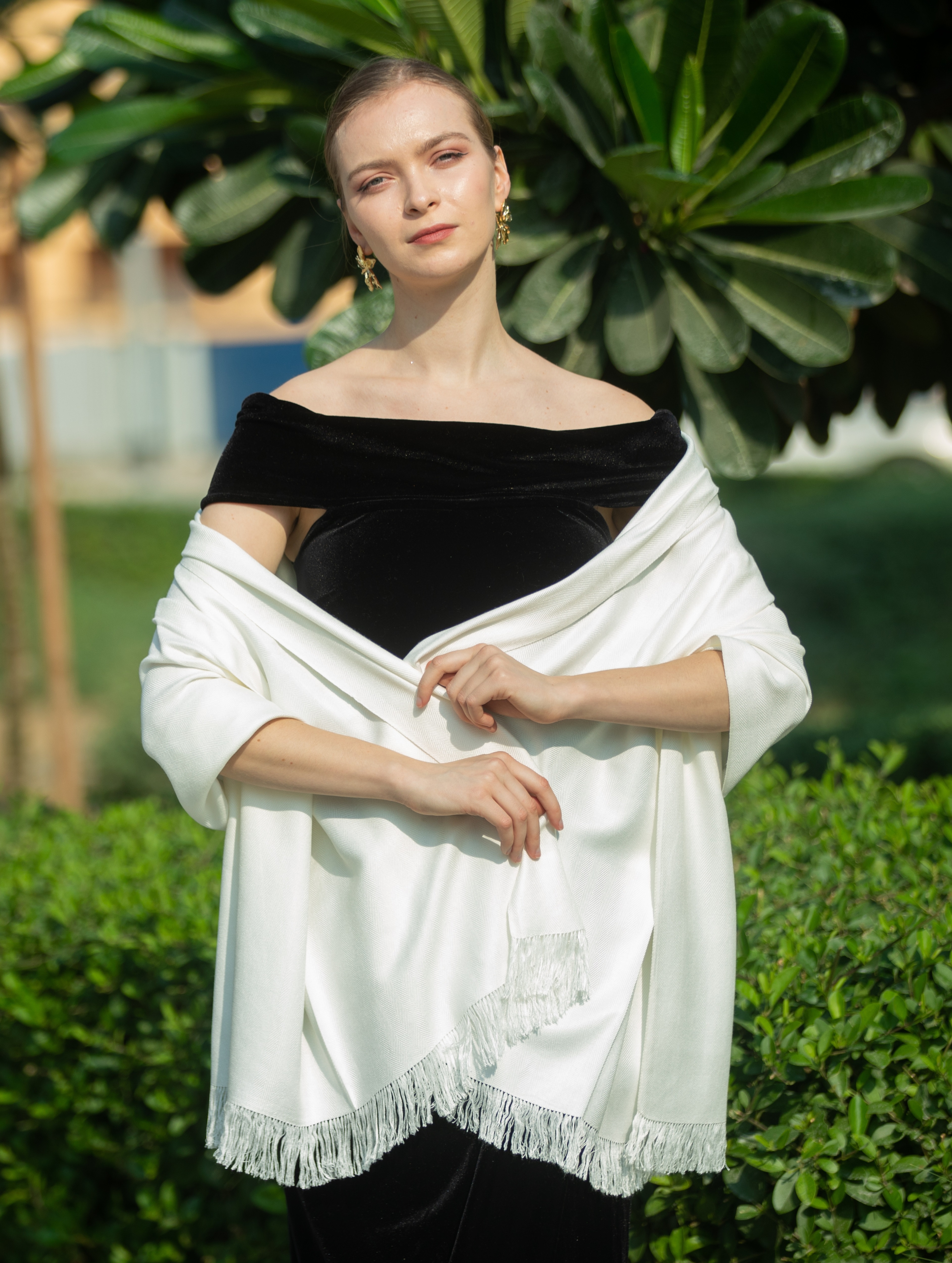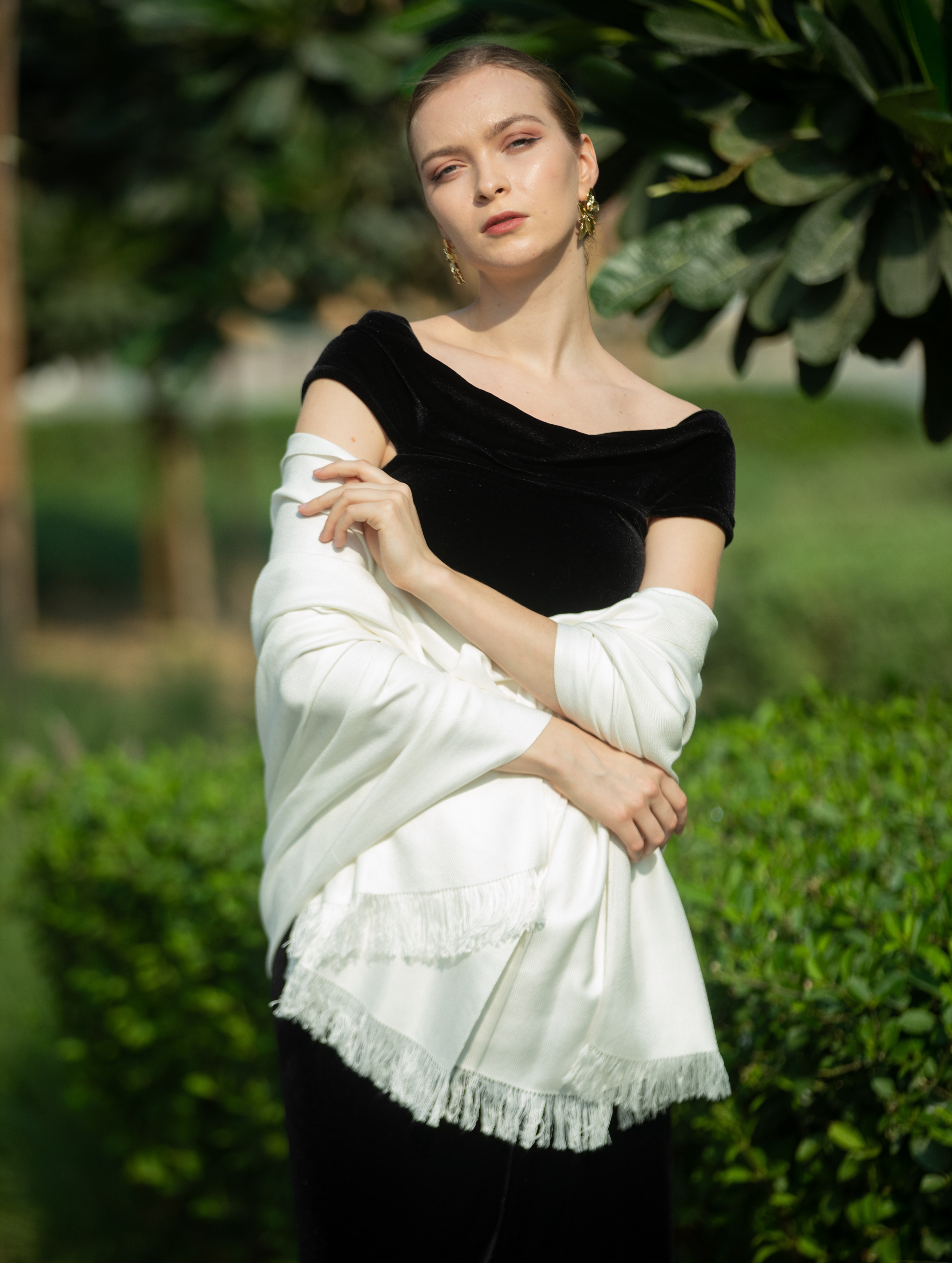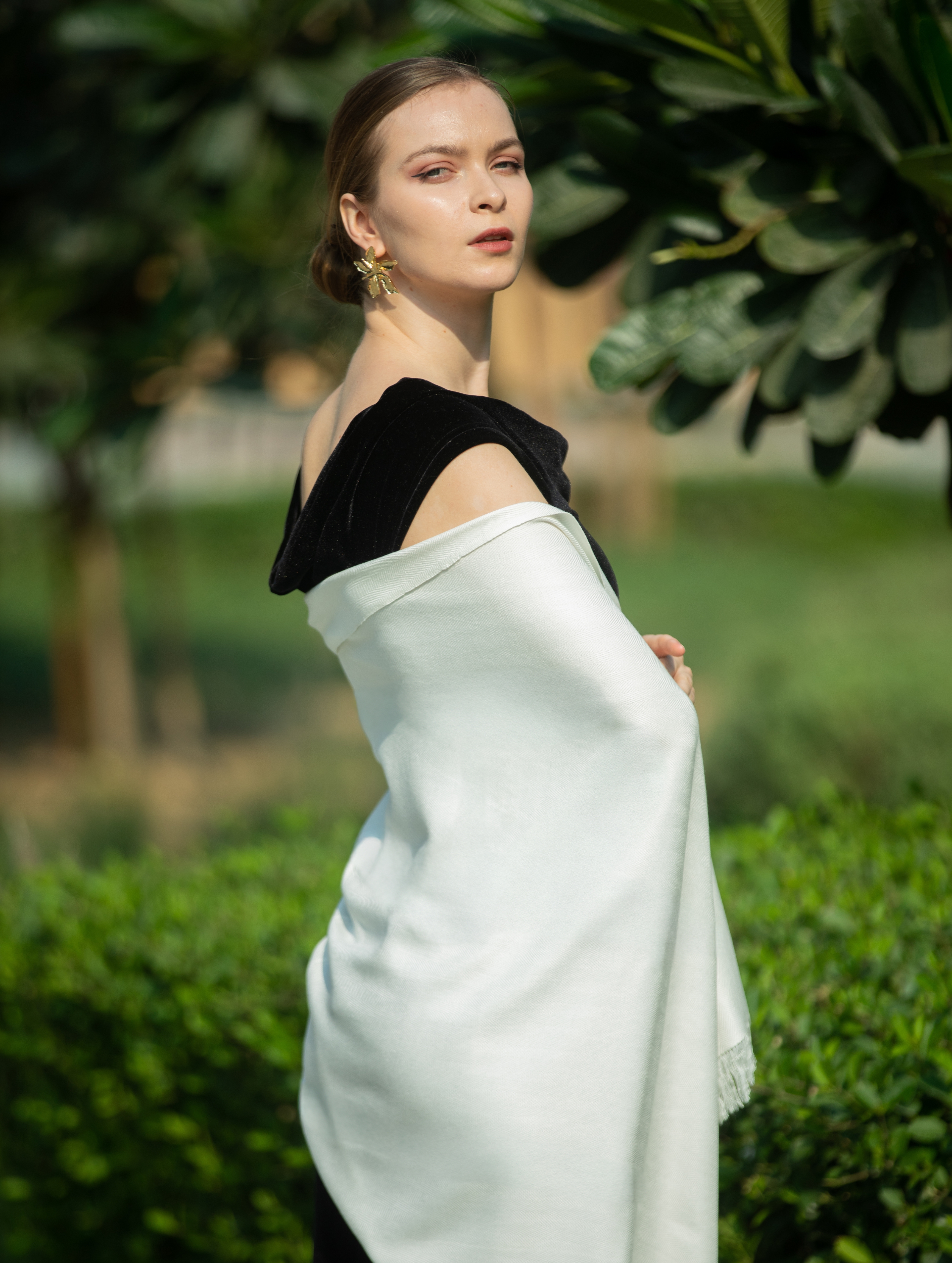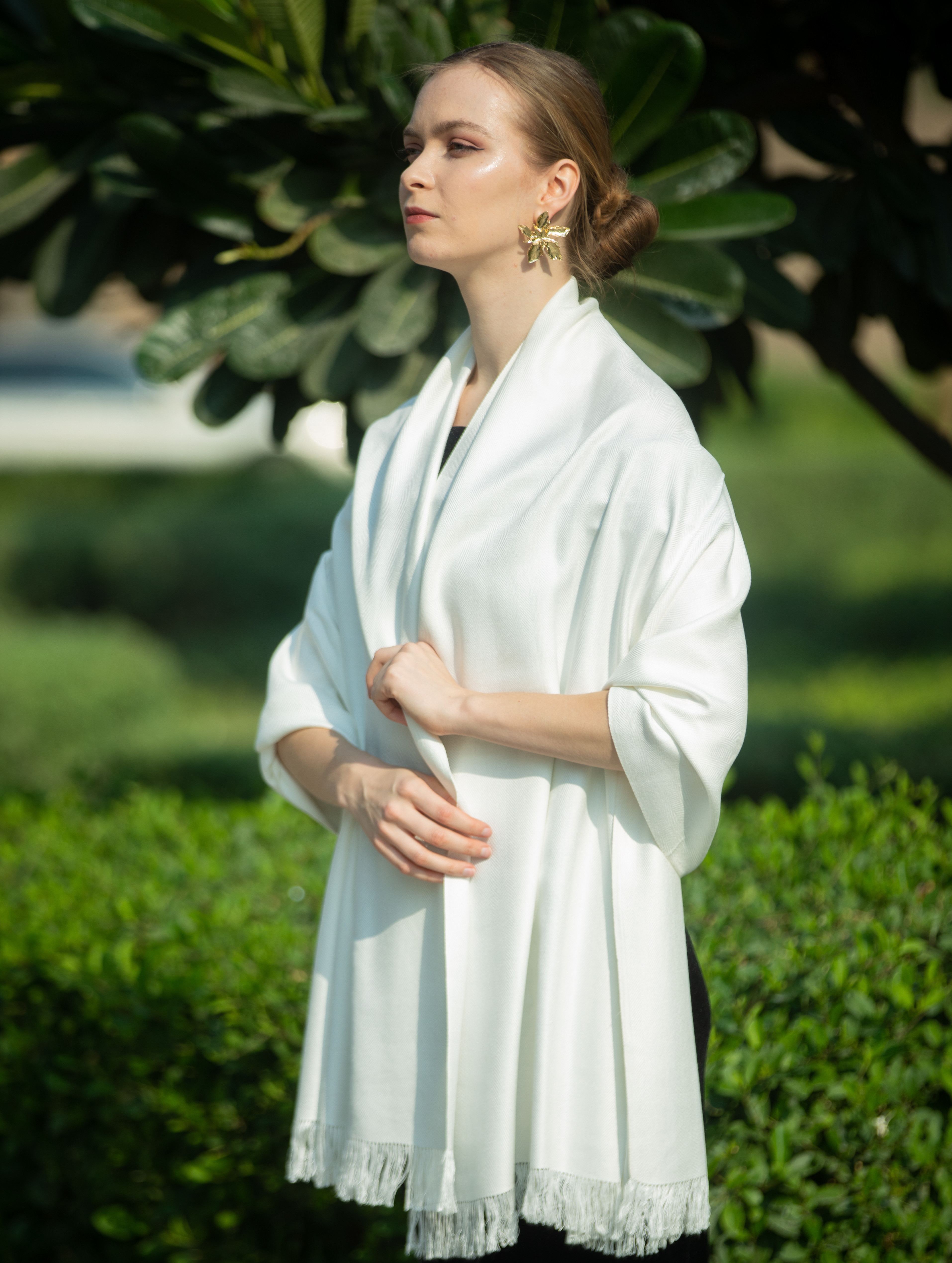 Egyptian Cotton Luxury Scarf/Shawls - Off White - 100% Cotton - Handloomed
