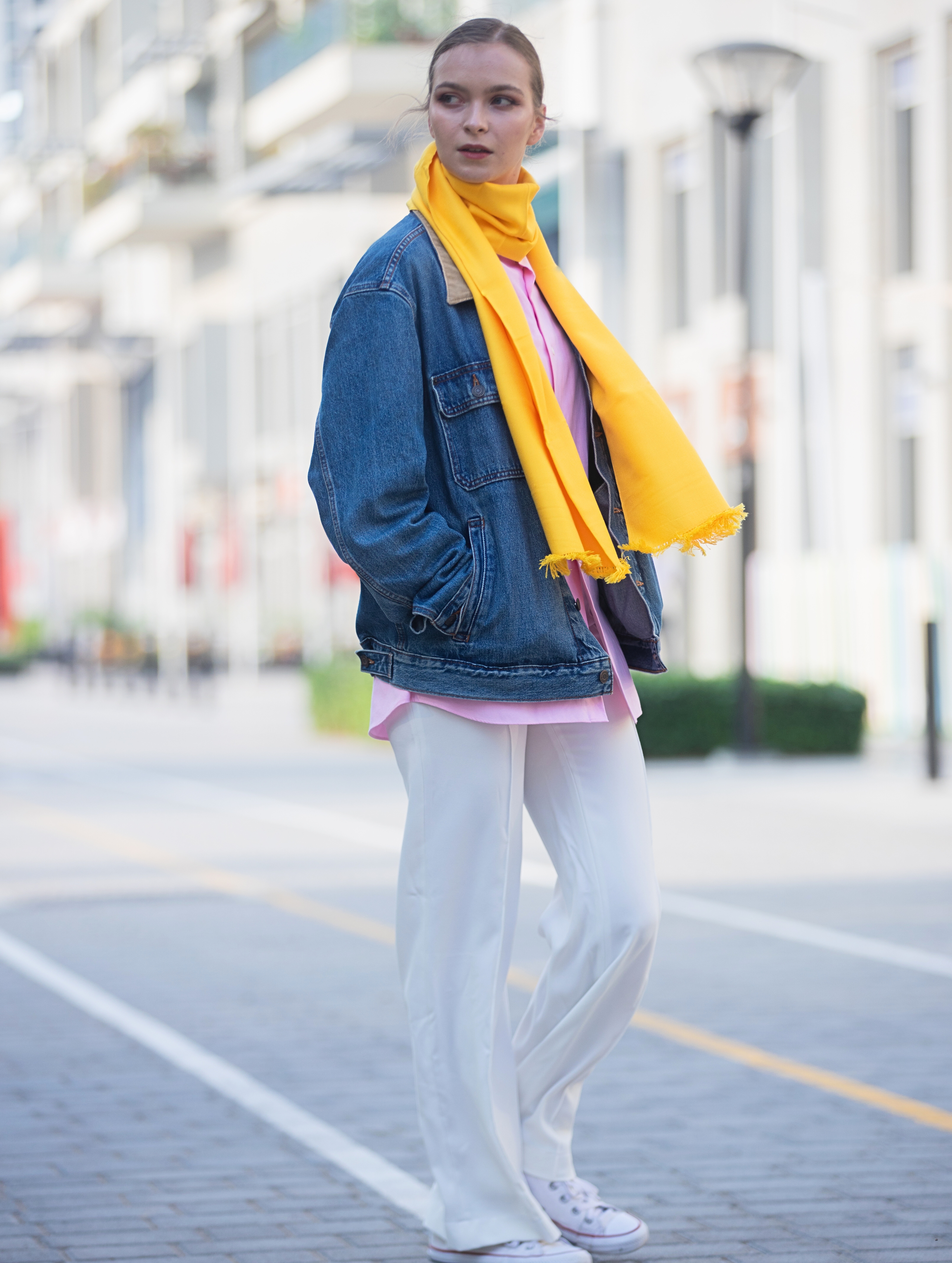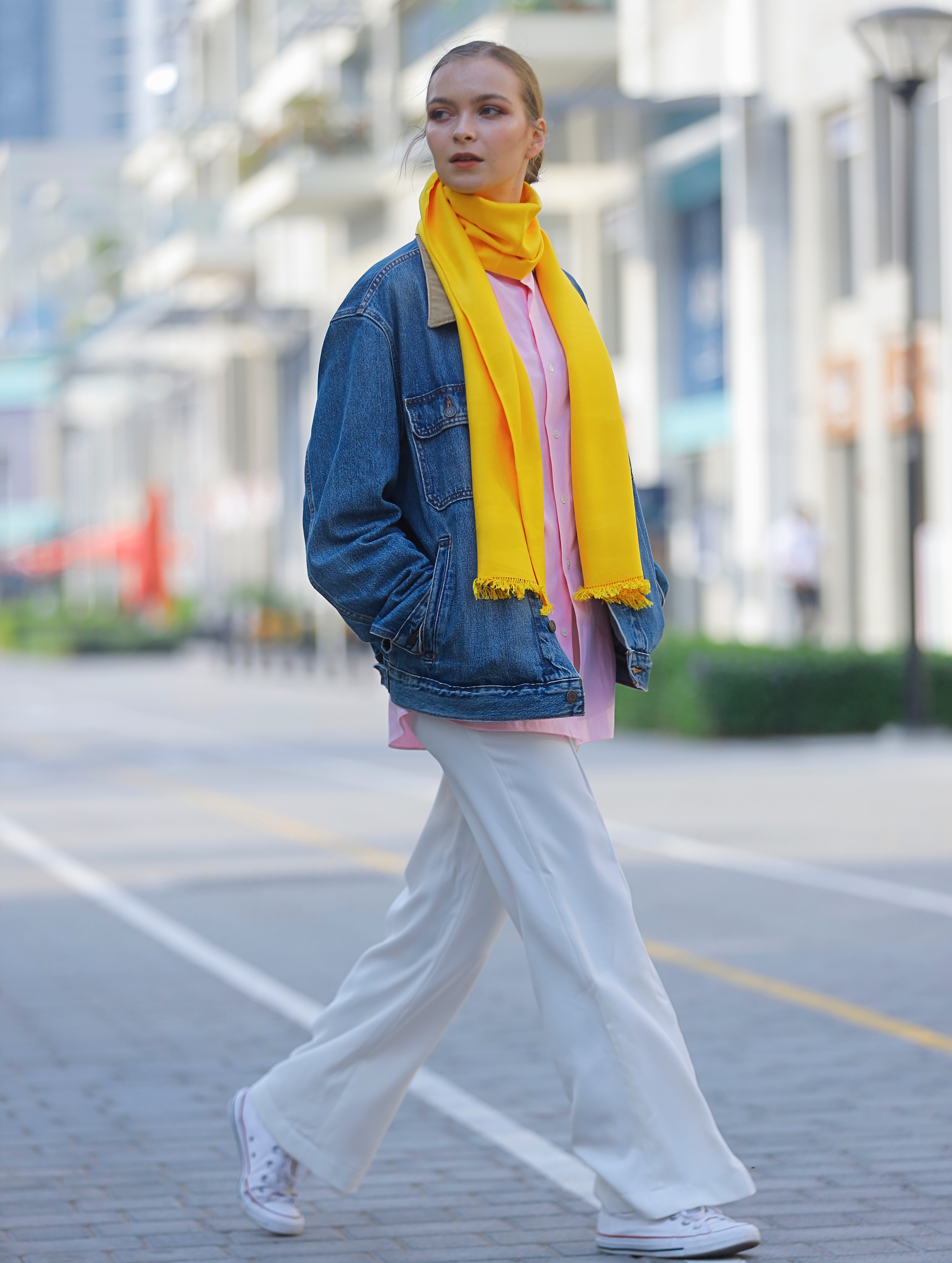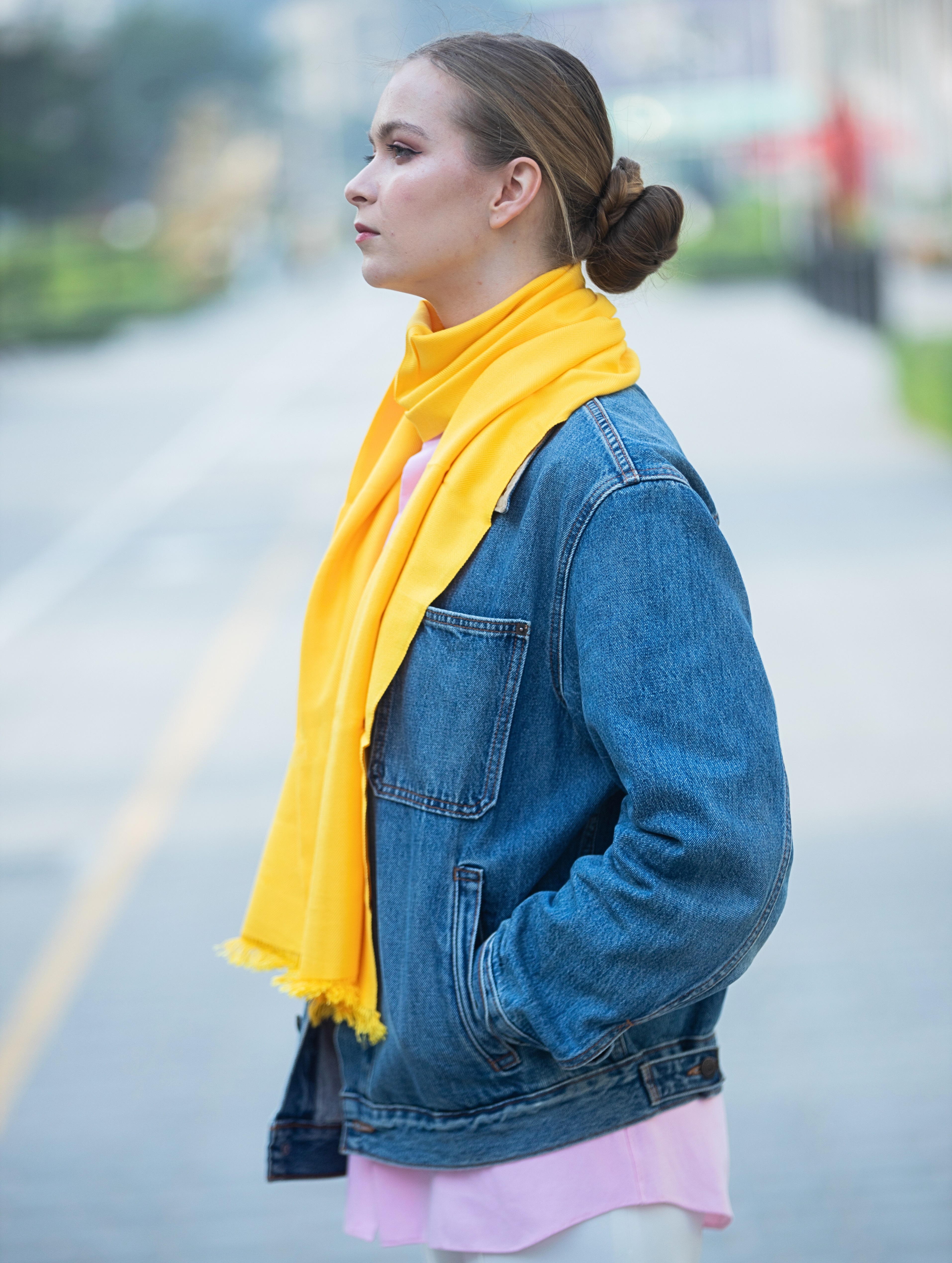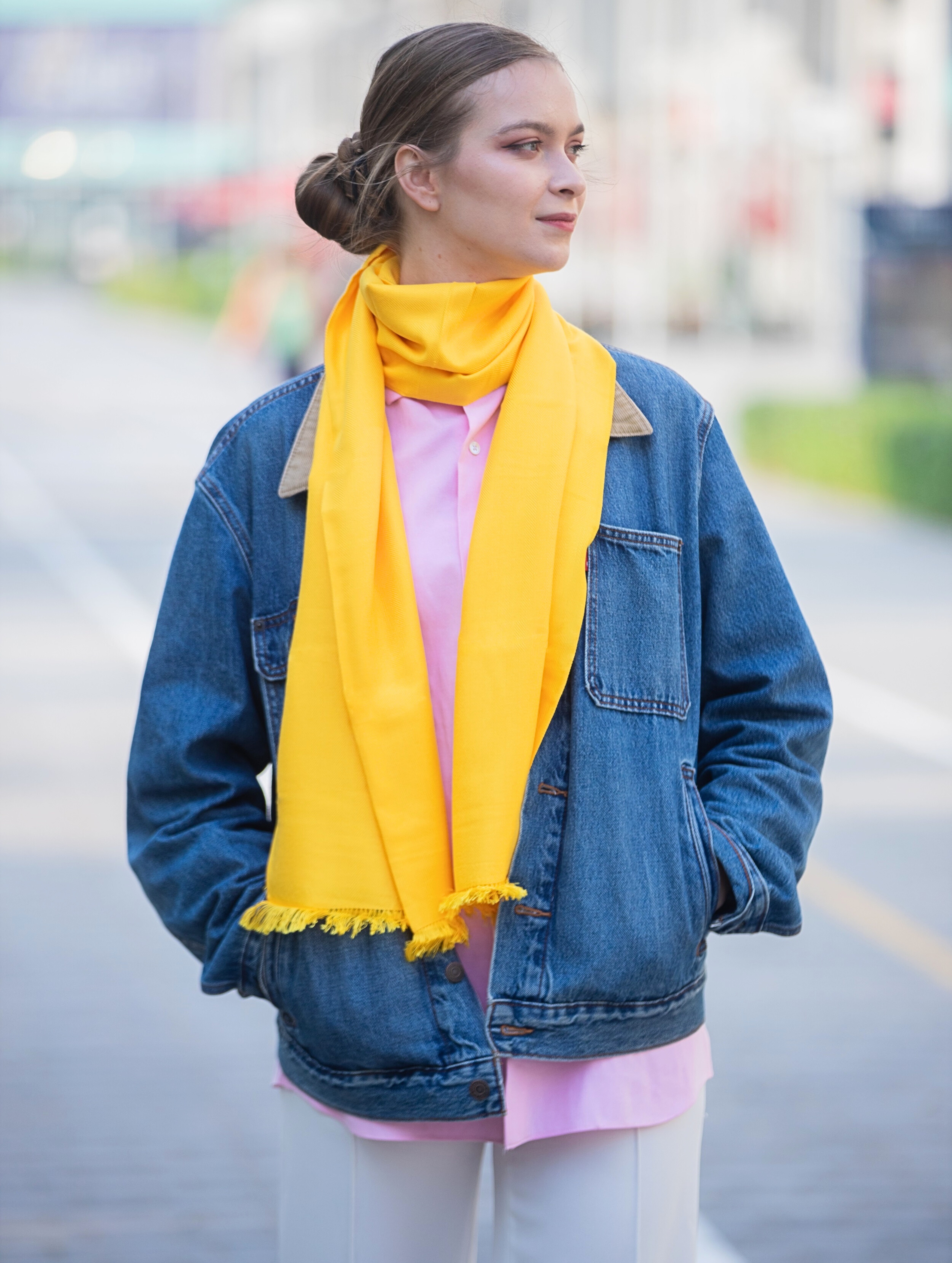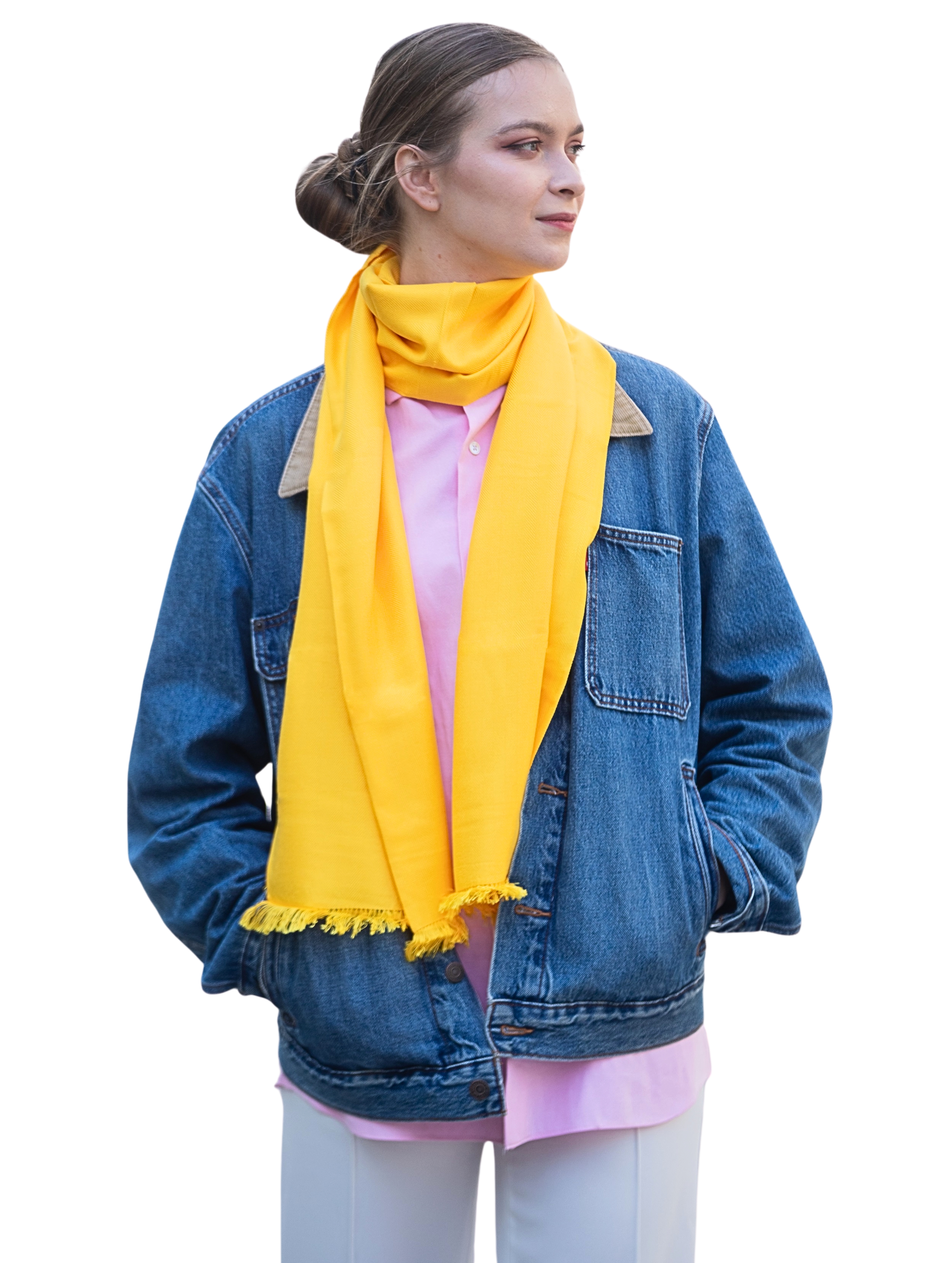 100% Egyptian Cotton, Hand-loomed Scarf, Luxurious feel, Breathable, Solid colors in a branded Gift box, Unisex (Light Yellow)